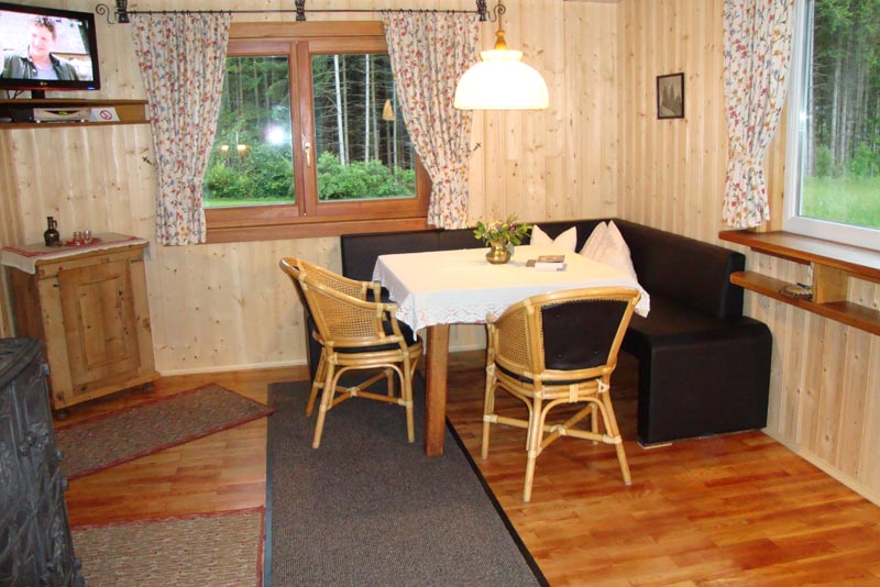 Wie schon der Name sagt, Haus Sonnenschein mit überdachtem Vorbau und schöner Wind geschützter Sitzecke. Vorraum, Wohn/Essraum mit Sitzecke, Couchbett, Flachbildschirm SAT- TV, Kochnische mit ausreichend Geschirr, Geschirrspüler, Mikrowelle, Fiterkaffeemaschine, Kühlschrank, Wasserkocher. Badezimmer mit Dusche, WC getrennt. - Heizung: Sie können wählen entweder E- Heizung oder Dauerbrandofen der vor allem im Winter für sehr gemütliche Atmosphäre sorgt. Holz für Dauerbrandofen wird gratis gestellt. Bei E-Heizung, Stromverbrauch gegen Bezahlung.