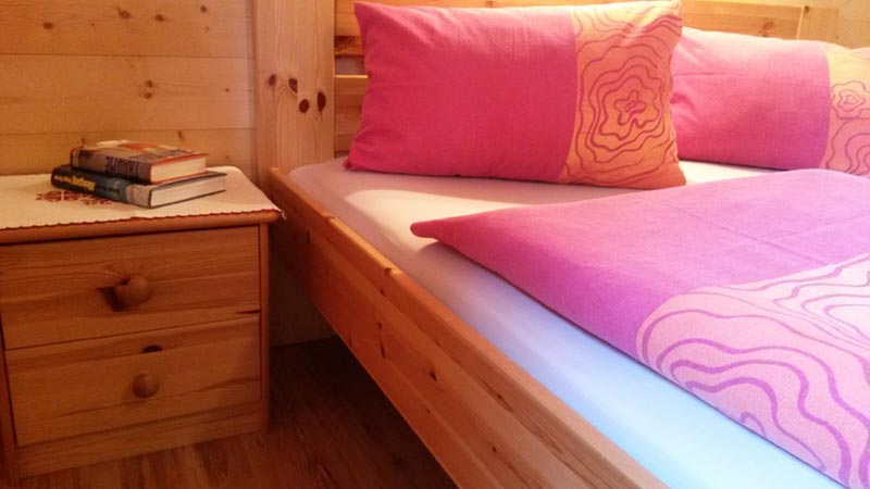 - Obergeschoss:Neu renovierte Schlafzimmer mit Holz vertäfelt. Ein Zweibettzimmer mit Balkon, ein Einbettzimmer mit Durchgang in ein weiteres Zweibettzimmer. Alle Betten fußfrei.